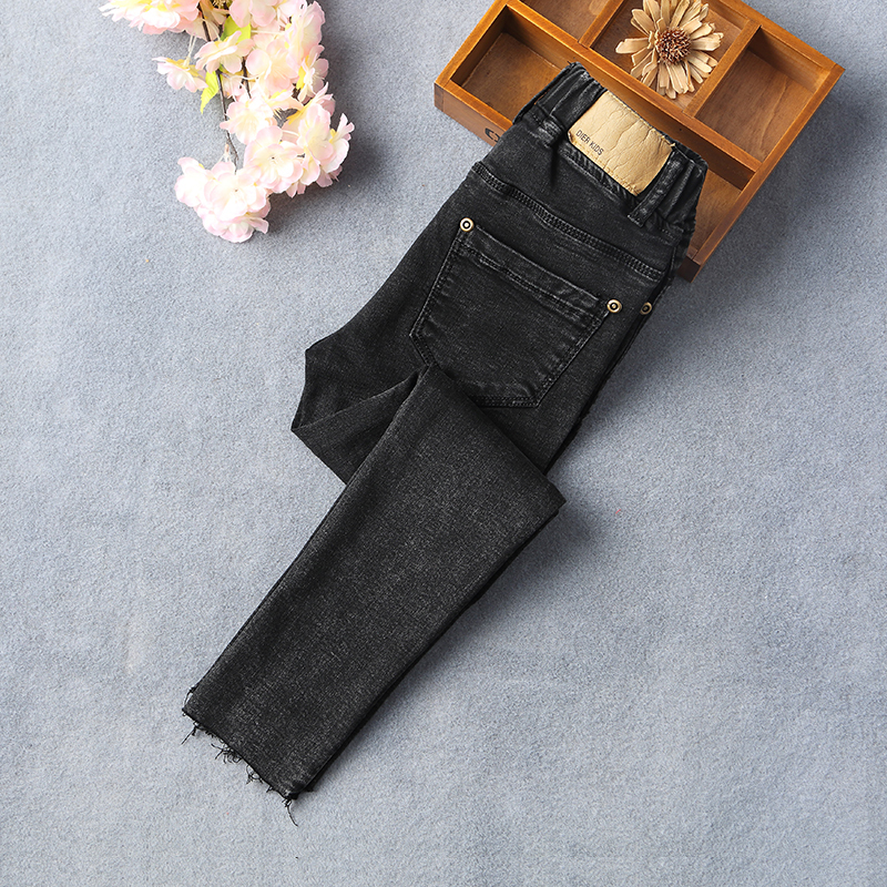韓版秋季復(fù)古百搭寬松高腰做舊磨白直筒牛仔